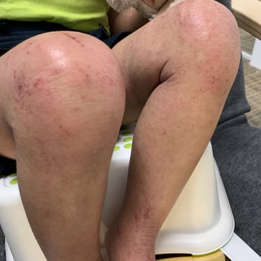 We decided to see a TCM practitioner to switch to non-steroid treatment but instead of getting better, Enya’s whole body broke out with itchy red spots and even the inner layers of her skin were red and inflamed from all the detoxing and steroid withdrawal. Getting Enya to take the TCM medicine was also extremely difficult. It was a very heart-wrenching and painful many months with a lot of screaming; when showering, her whole body stings; day and night, the intense itch came in waves, and we had to try to help massage the itchy areas instead of letting her use her nails to scratch. It was impossible for any of us to get proper sleep, and the tiredness and frustration just made us all very irritable. The bed and floor were always covered with skin and blood.